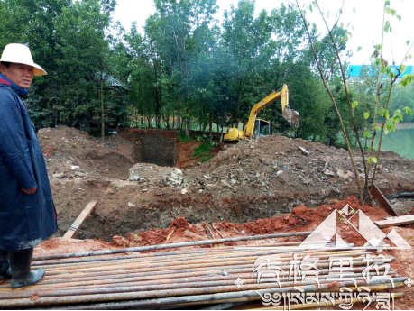 2、二区:临湖挑台浇筑完成,吉祥结基础浇筑完成,亲水小驻广场浇筑完成;垃圾外运结束,营养土回填结束,地形整理结束;水电预埋结束。