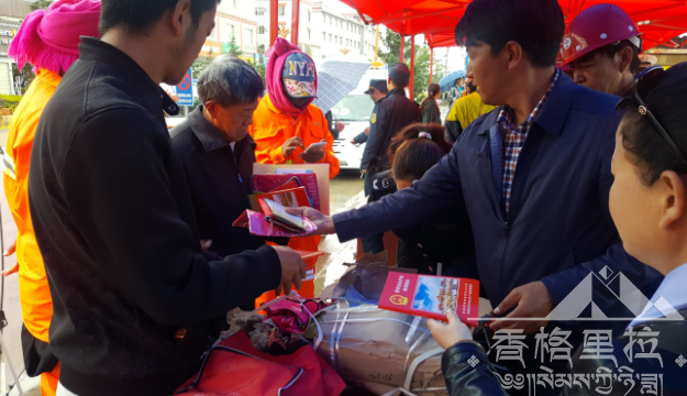 天公不作美,早上香格里拉飘着蒙蒙细雨,但不减宣传人员和来活动现场群众的热情,活动现场人头攒动,有前来咨询、领取宣传册子的,有驻足在宣传展板前认真了解安全生产知识的,现场宣传人员都细细进行解答。