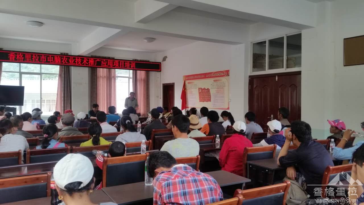 2016年7月20—21日,香格里拉市农业和科学技术局与虎跳峡镇农科站在虎跳峡镇居委会举办了电脑农业技术推广应用培训会,聘请了虎跳峡镇农科站资历较深的两位高级农艺师,针对扶贫点—东坡村农业生产的实际情况,因地制宜,开展了电脑农业专家系统知识与实践相结合的培训。此次培训,共有164人参加,培训时间虽很短,但每位学员都能做到认真听讲,在培训过程中,农民朋友们也提出了在生产中遇到的实际困难和问题,专家都一一作了耐心的解答,培训结束后,对154户农户发放了复混肥12.32吨(308包),进口微肥硝钾钙硼锌770公斤(308包)。