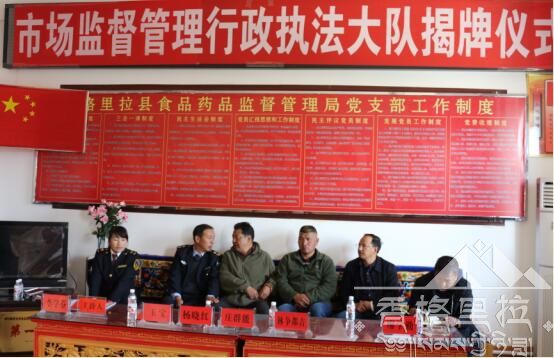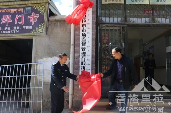 2016年10月25日上午,香格里拉市市场监督管理局行政执法大队举行了揭牌仪式,出席此次揭牌仪式的领导有州质量技术监督局局长庄群能,州行政工商管理局副局长杨晓红,州食品药品监督管理局副局长林争都吉,市市场监督管理局局长玉宝等,此次揭牌仪式还邀请了尼西乡副乡长廖学勤、学校食堂负责人以及市场内部分经营户负责人前来参加。市市场监督管理局李学芬副局长主持了挂牌仪式。