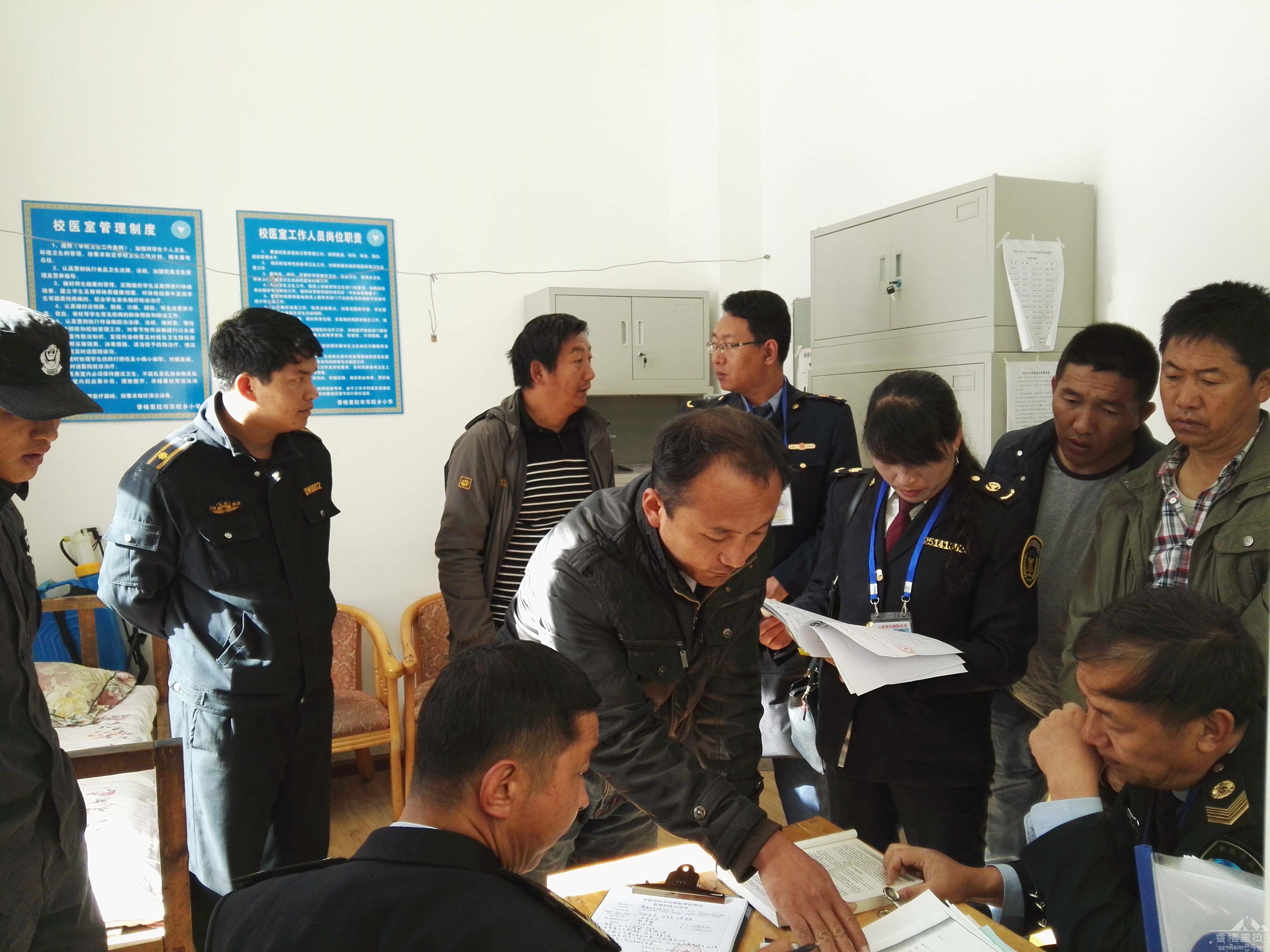 近日,由香格里拉市市场监督管理局局长玉宝同志带领食品安全检查组一行7人进入东旺乡境内开展为期两天的食品安全联合执法检查,工作得到乡人民政府的大力支持,分管副乡长全程陪同,抽调派出所、环综办、卫生院和乡镇执法大队工作人员加入到检查中来,对全乡校园食堂、医务室及周边餐饮服务单位、食品小作坊、超市、小卖部等进行了一系列检查、治理和整顿。