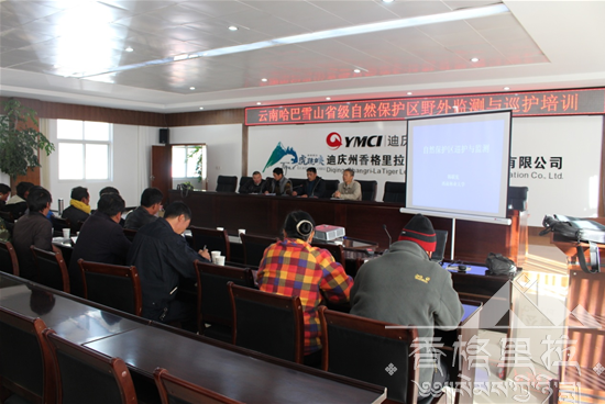 一、哈巴保护所所长张文擎主持讲话,强调此次野外监测与巡护培训的重要性,要求所有培训人员认真学习并做好记录。