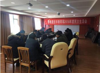 2016年1月20日,香格里拉市教育局党委在局三楼会议室召开领导班子2016年度民主生活会。市委组织部陈永生主任、第五纪工委廖建辉书记参加会议并作指导;局党委书记牛盈春同志主持会议;局领导班子成员牛盈春书记、和绍东局长、人民政府督导室殷学典主任、和群星副局长分别作了剖析发言;红旗小学党支部书记、校长和世新同志、民族小学党支部书记、校长松建华同志和市教育局部分股室长列席会议。