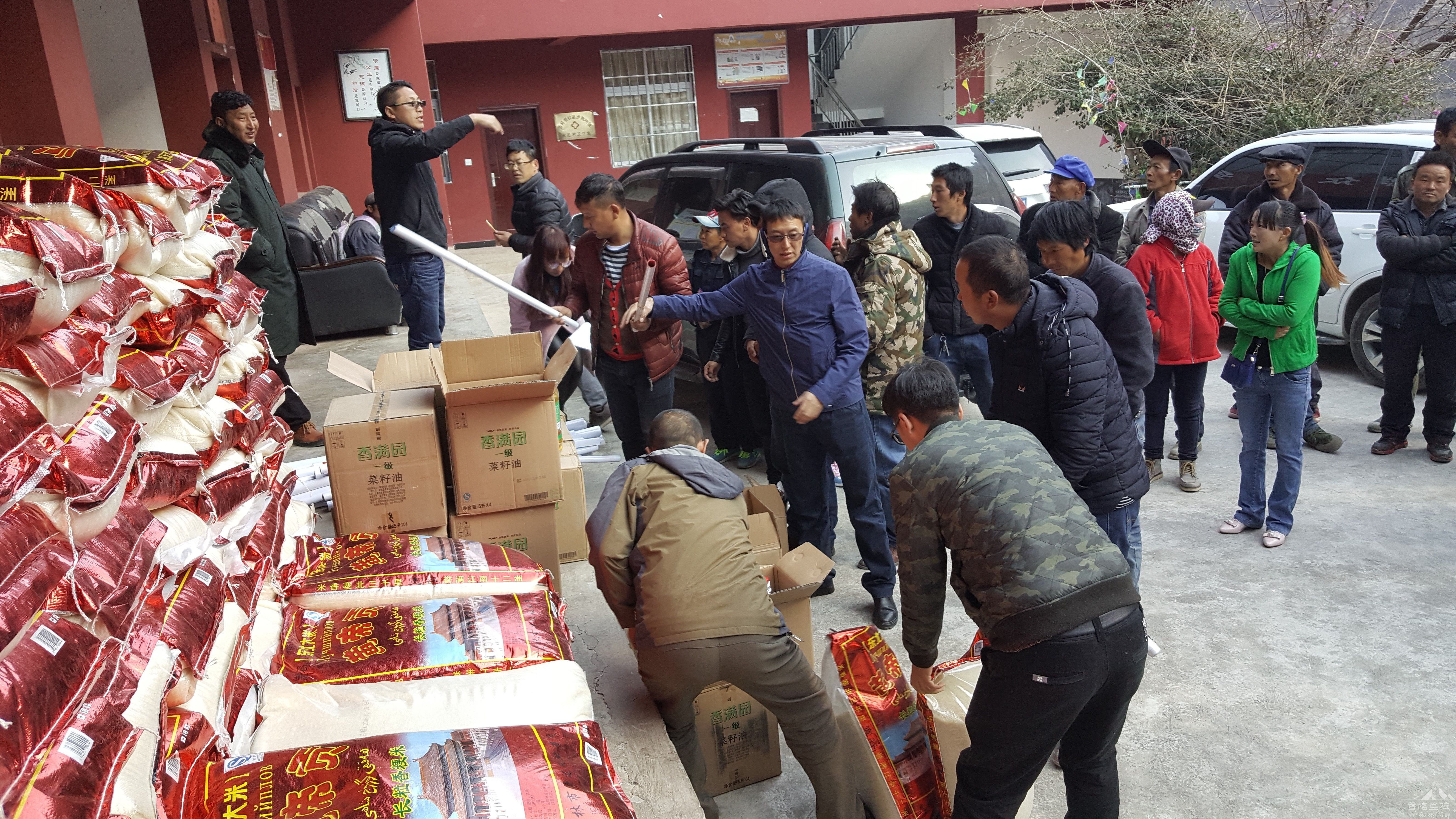 为了进一步密切联系群众,增进挂包干部和贫困群众的感情,切实搞好定点帮扶工作,不断改善永胜村广大农民特别是贫困户的生产、生活条件,根据习近平总书记2017年新年贺词精神:让贫困群众能够吃得好、穿得暖、过好年和“大回访”的要求,在春节来临之际,1月24日,市开发投资集团有限公司(原市国投)党支部书记杨晓同志带领公司全体在职干部职工,来到公司帮扶村——虎跳峡镇永胜村,专程进行扶贫慰问活动,这也是代表我们香格里拉市开发投资集团有限公司深入开展先进性教育活动当中的一项重要内容,其目的就是为广大群众多办事、办好事、解难事。为此,我们为永胜村的7个小组65户贫困户送来了价值达21000元的生活物资,包括大米136袋、香油66桶、年画66幅。