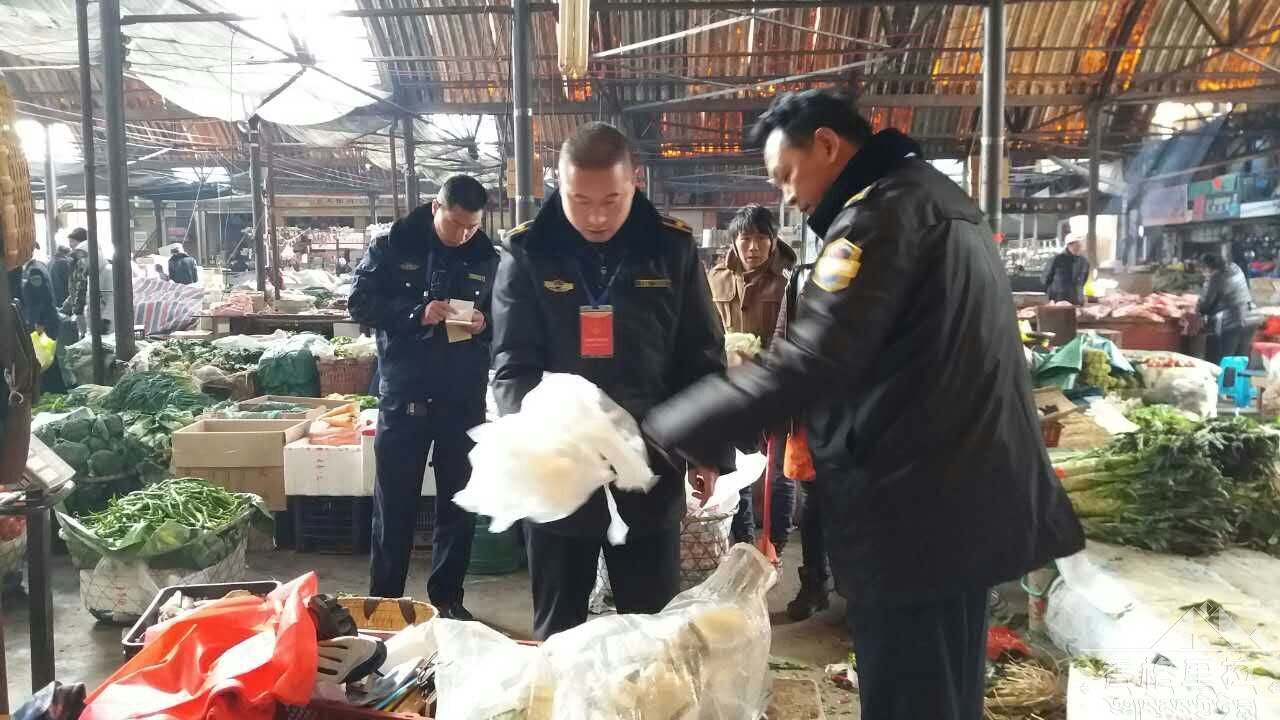 2月7日上午,在环综办主任小达瓦带领下,环保林业执法大队跟随市场监管局、工商局、畜牧局、电视台对我市城区向阳农贸市场、无公害市场、二农贸市场内所有商家店铺进行检查。
