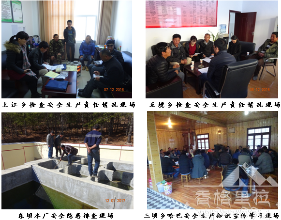 检查发现:一、各乡(镇)普遍存在由于领导班子人员调动、更换频繁未进行及时调整充实安全生产领导小组成员。部分安全生产领导小组成员对水利安全生产意识淡薄,对辖区内的水利生产经营单位宣传、监督管理不到位。二、各乡镇普遍存在领导班子人员对水利安全生产隐患判断能力欠缺。个别乡镇安监员、水利员对水利安全生产检查结果无痕迹、台帐资料,对信息系统上报操作不熟息。三、东旺乡新联村山区水利整村推进项目已完成80%的工程量,但至今未办理安全生产备案。检查发现监理单位人员、施工单位安全员未在场。施工现场无明显安全生产标识、标牌。四、香格里拉市纳赤河达拉段河道治理工程、虎跳峡镇长胜小型灌区工程,至今未办理安全生产备案,施工现场无明显安全生产标识、标牌。