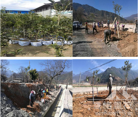 香格里拉市林业局力争通过绿化建设实现“村庄园林化、道路林荫化、农田林网化、岗坡林果化、庭院花园化”的目标。于2017年度在全市11个乡镇全面实施乡镇绿化造林三年行动计划建设项任务,每个乡镇每年种植10万株树木,计110万株。上江乡实施格兰、士旺村泥石流灾害生态恢复项目面积:1071亩,种植苗木:22252株。