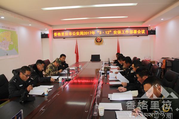 为确保“3·12”安保保卫工作各项措施落地实施、取得实效,保证迎佛节活动安全有序进行。2017年3月11日上午11时,香格里拉市副市长、市公安局和向荣局长组织参战各成员单位主要负责人和市公安局各职能组负责人召开了“香格里拉市公安局2017年“3·12”安全保卫工作动员部署会议”。会上,市局指挥中心主任根据《方案》进行了具体工作部署。