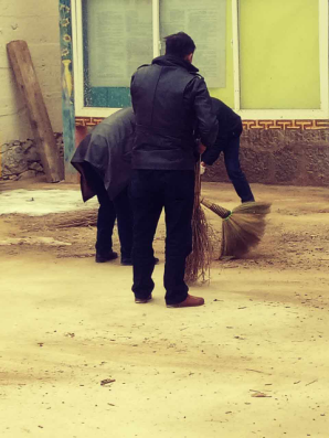 由于烧香人多,寺院值班人员少。工作人员守候在大宝寺烧香台附近,随时观察香炉内的火势。承恩寺驻寺工作组帮助承恩寺僧侣打扫寺院卫生,为寺院僧侣营造一个好的生活环境。