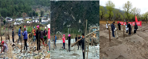 2017年度在全市11个乡镇全面实施乡镇绿化造林三年行动计划建设项任务,每个乡镇每年种植10万株树木,计110万株。虎跳峡镇实施1000门,种植苗木:22000株;五境乡防护林建设面积:181亩,共种植苗木:10136株;上江乡义务植树(柳树)1000株。