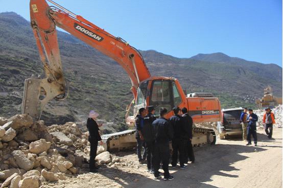 启动仪式后,“迅雷行动”组长、副院长和志诚,副组长、执行局长张红才、法警大队大队长许崇华同志立即带领参战干警赶赴100多公里以外的(香格里拉)—(维西)二级公路施工现场,查封由申请执行人云南斗山机械有限公司通过卫星定位向本院提供的2个被执行人的挖掘机,在查封过程中因其中一台挖掘机已转让,现挖掘机使用者极不配合执行工作,通过执行干警耐心细致的向其做工作,直到晚上十点多才将查封回来的挖掘机停放到提前联系好的停车场。