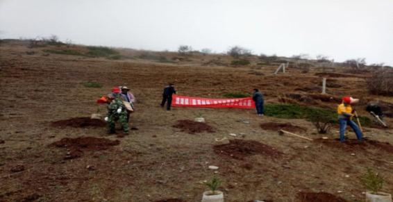 林场职工及村民一百余人不管下雨还是天晴,团结一致、辛勤劳动,有的负责挖坑、有的负责放苗、有的负责培土,现场一派繁忙的劳动场面。
