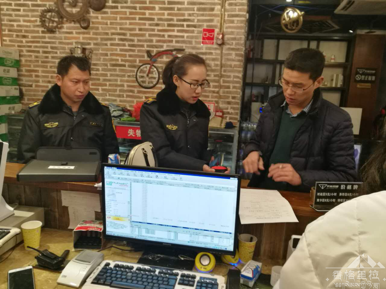在此次抽查中,我大队共出动执法车辆2台次,执法人员 6人次,对市区9家网吧进行抽查。此次抽查的重点为:是否接纳未成年人进入营业场所、是否按规定悬挂警示标牌、是否按规定悬挂《网络文化经营许可证》及营业执照、是否按规定对上网消费者的有效证件进行核对登记、是否超时营业等。