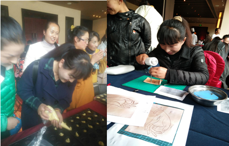 此次培训内容有主题演讲、主题电影、现场教授插花、茶道、蛋糕及手工轧糖、手工皮雕制作等。