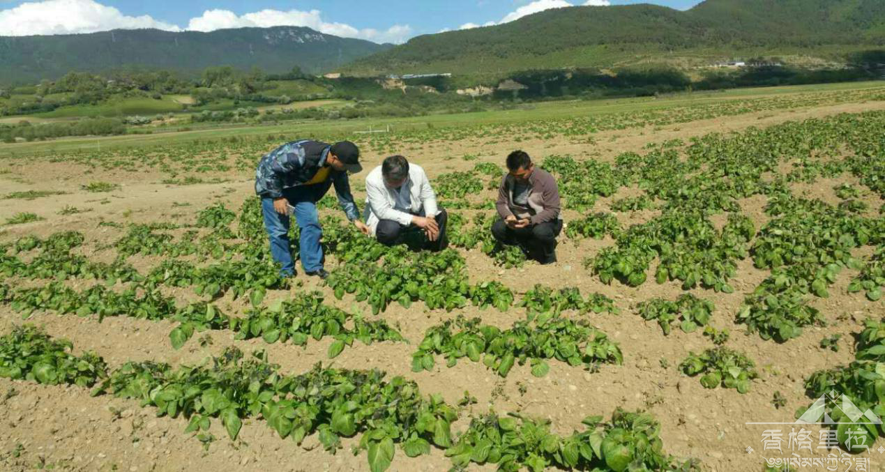 香格里拉市持续几天受冷空气影响发生剧烈降温天气,小中甸镇农作物不同程度遭受低温冻害,尤其马铃薯较为严重。2017年6月5日,香格里拉市农业和科学技术局领导得知情况后,高度重视,第一时间由局长带队,与种子站站长及小中甸农科站工作人员一行到实地察看灾情。