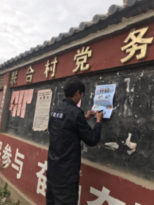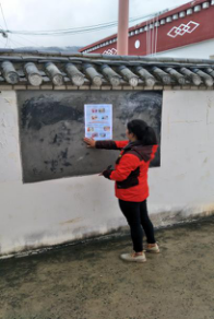 村委会在公告栏粘贴宣传海报,对群众做进一步的宣传