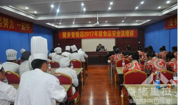 聚乡音饭店在香格里拉市内开有三家分店,主要承担香格里拉市红白喜事及旅游接待,在全省重点旅游地区餐饮食品安全质量提升专项工作期间,该单位积极极响应号召主动联系我局申请给予培训,本着为人民服务的宗旨,主动服务监管单位的原则,组织了40人次参加了此次培训。