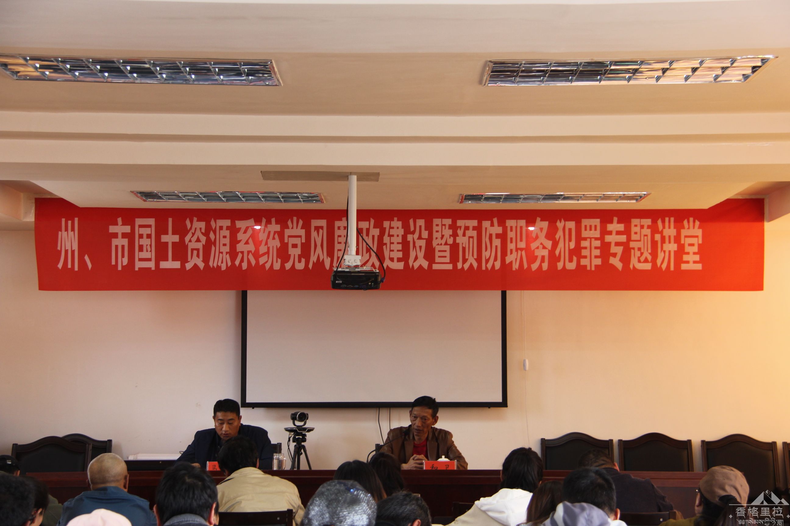在全面从严治党的新常态下,为开展好香格里拉市国土资源系统党风廉政建设工作,提高干部廉洁从政意识,防范岗位职务犯罪。2017年6月21日,迪庆州国土资源局、香格里拉市国土资源局邀请迪庆州人民检察院和卫副检察长开展了州、市国土资源系统党风廉政建设暨预防职务犯罪专题讲座,州、市国土局全体干部职工参加了会议。