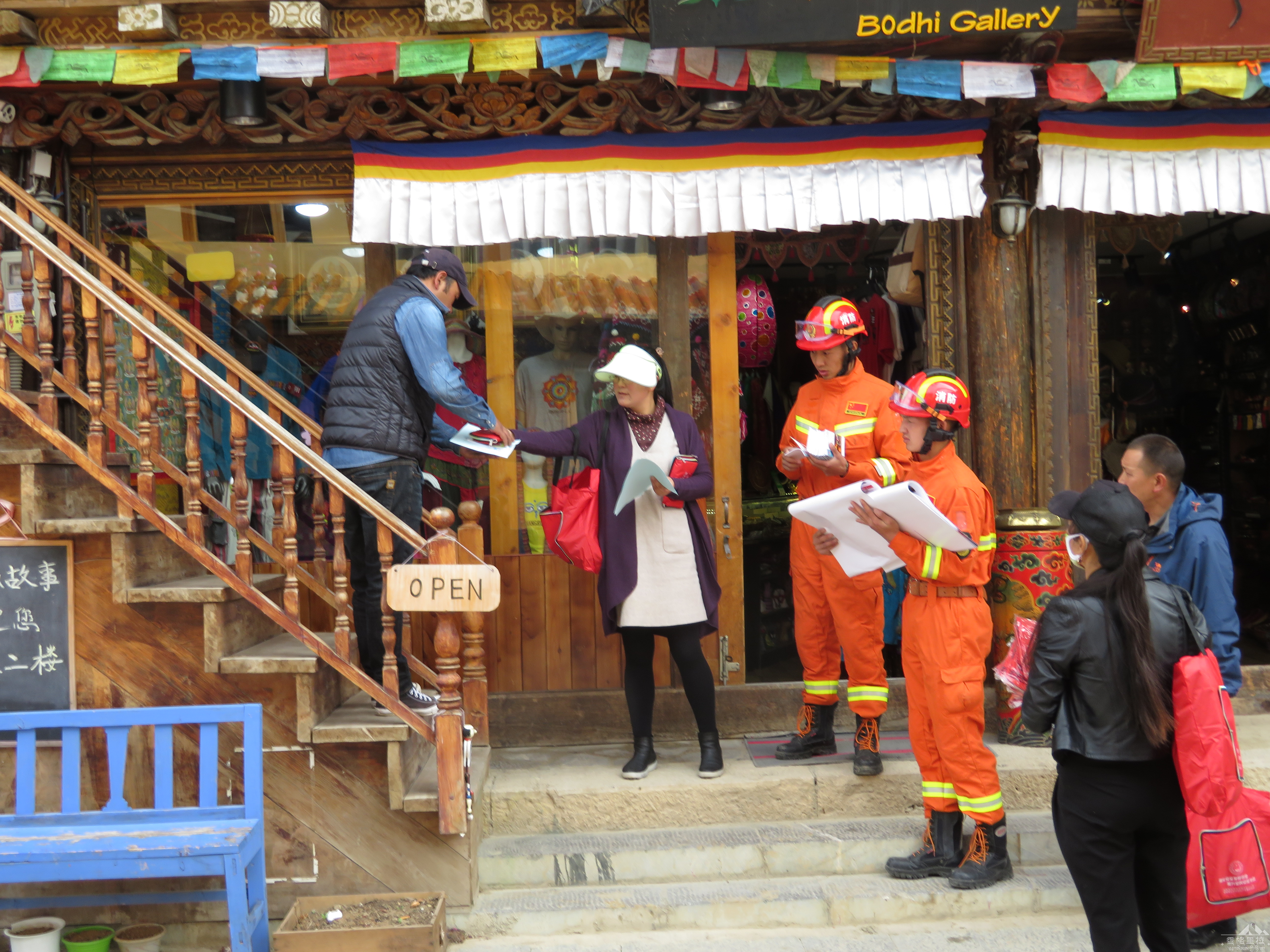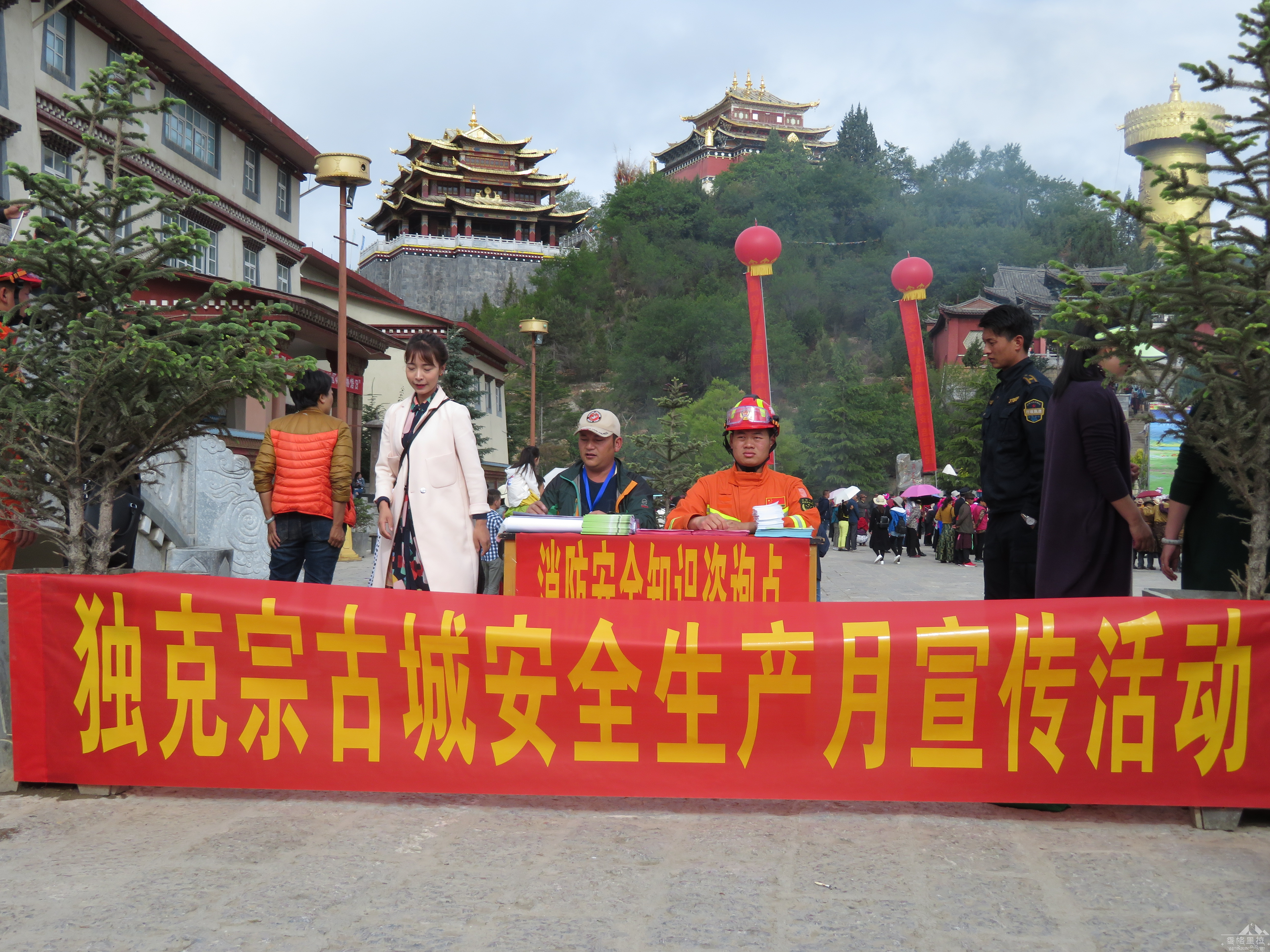 独克宗古城管理委员会联合建塘镇、市消防大队等相关部门,借助“独克宗金龙锅庄节”活动,在月光广场开展“安全生产月”宣传活动。