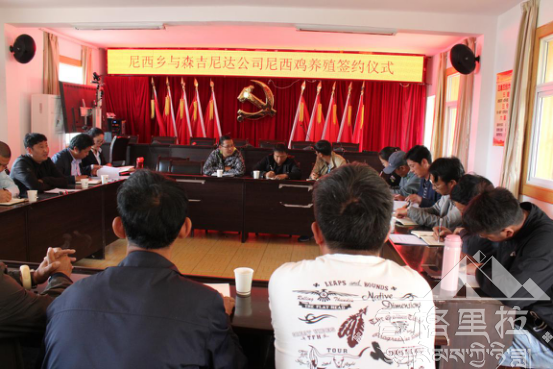最后,尼西乡政府、森吉尼达公司、各村委会签约了尼西鸡养殖合同,合同通过由森吉尼达公司提供养殖鸡苗,对鸡苗做好追溯工作后发放至各村委会养殖户进行饲养,由尼西乡畜牧兽医站提供防疫及养殖技术服务,养殖周期达6个月以上,将回收至公司进行销售。鼓励各村各养殖户努力发展尼西鸡养殖产业,我公司将积极努力提供技术保障、饲料、销售等一站式服务。