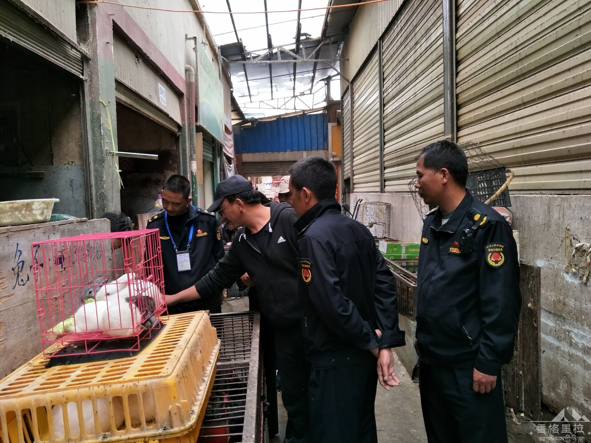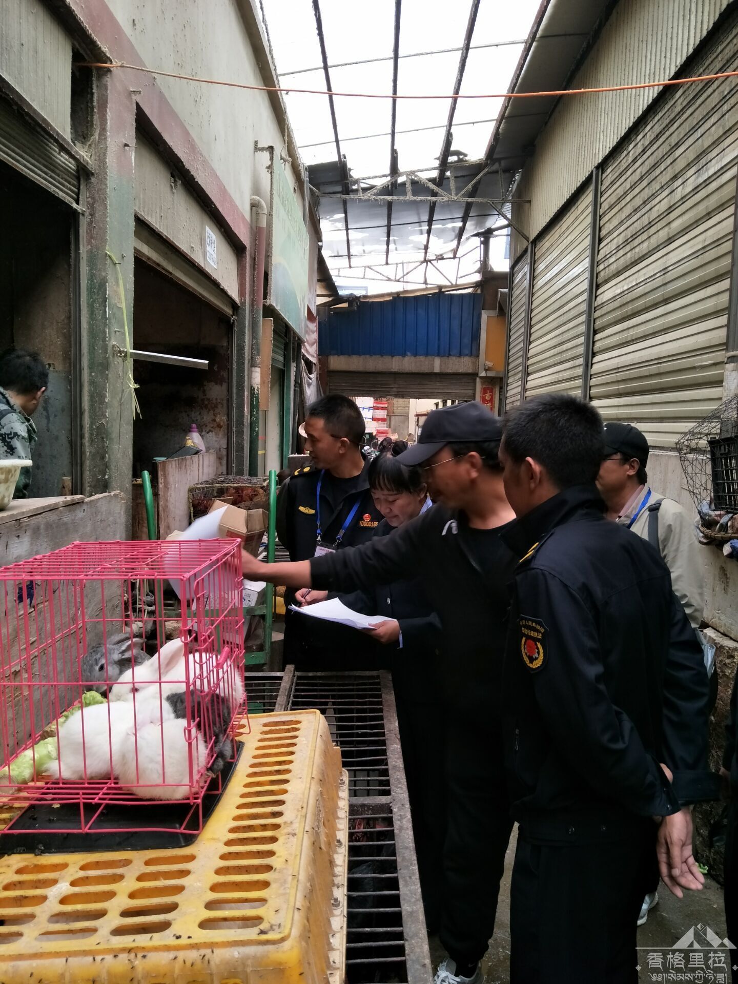 6月22日下午,根据市政府的决定,香格里拉市综合执法局、畜牧兽医局、市场监督管理局等三个部门组成的联合执法组。在无公害农贸市场、向阳农贸市场出入口张贴市政府的通告,并向向阳农贸市场内各活禽经营户下发通告。本次通告内容:一自本公告发布起10日内,向阳农贸市场的活禽经营户全部搬迁至无公害农贸市场进行经营。二自公告发布之日起至搬迁完成前,向阳农贸市场内所有活禽经营户禁止经营除鸡外的其他禽类。三无公害市场管理方要负责监督市场内活禽经营户做好休市、消毒、卫生等工作。四向阳农贸市场管理方要严格摊位管理,禁止向禽类经营户出租活禽经营摊位。