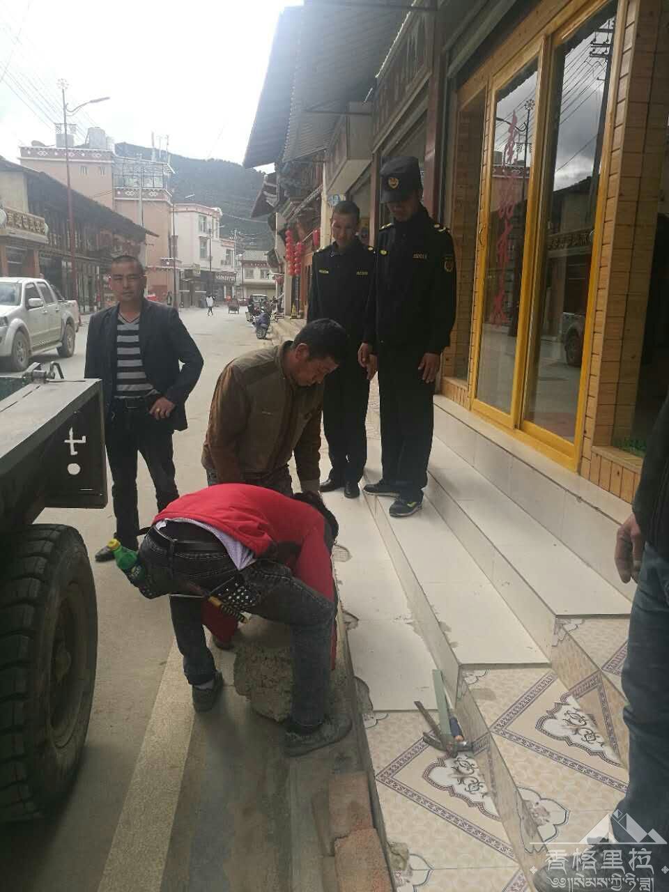二、对达娃路道路两侧商铺为防止车辆停放而私自占用道路堆放石头、建筑垃圾行为进行制止并清理。