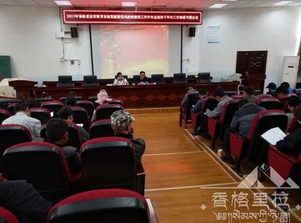 2017年7月3日上午十一时,香格里拉市教育局党委召开了全市教育系统党建暨党风廉政建设工作半年工作总结和下半年工作专题部署会。会议由香格里拉市教育局局长和绍东同志主持,全市直属中小学、幼儿园总支书记、支部书记,全市中小学校长、幼儿园园长、局机关股室长参加了本次会议。