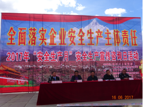 6月16日,在全国第十六个“安全生产月”活动来临之际,我局于2017年6月16日与全市相关单位同步开展“安全生产月咨询日”宣传活动。全市安委会成员单位、重点企业单位负责人齐聚香格里拉市吉当坛城广场开展2017年“安全生产月”宣传咨询活动。当天我局围绕国家确定的“全面落实企业安全生产主体责任”的宣传主题,聚焦改革发展,监管执法、事故预防和安全法规知识等内容开展系列宣传教育活动,推动水利生产经营单位落实安全生产主体责任,凝聚弘扬安全发展理念、支持安全生产的共识,为防范重大水利生产安全事故,减少较大和一般事故筑牢思想基础。不断加大舆论宣传力度,充分发挥基层单位和主体责任意识,为奠定坚实的水利安全发展基础。