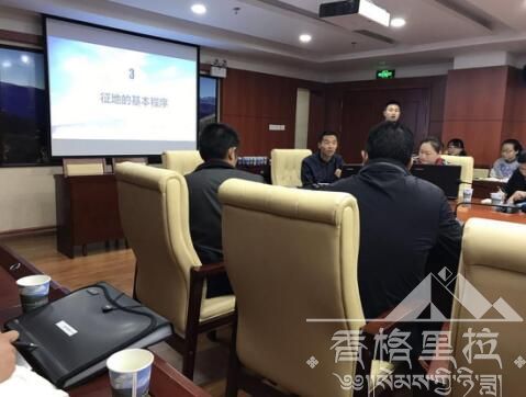 2017年8月10日在香格里拉市行政中心5-15会议室召开了香格里拉市征地拆迁补偿工作培训会,会议由鲁副市长主持,香格里拉新型城镇化领导小组组长王副市长作动员讲话,香格里拉市国土资源局作为征地拆迁的重要参与部门,本局的耕保股全员参加了此次培训。
