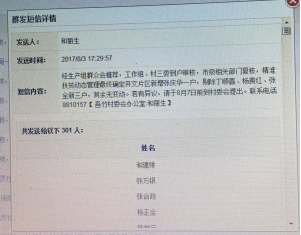 图为在云岭先锋平台上以短信形式将公示信息传达给百姓。