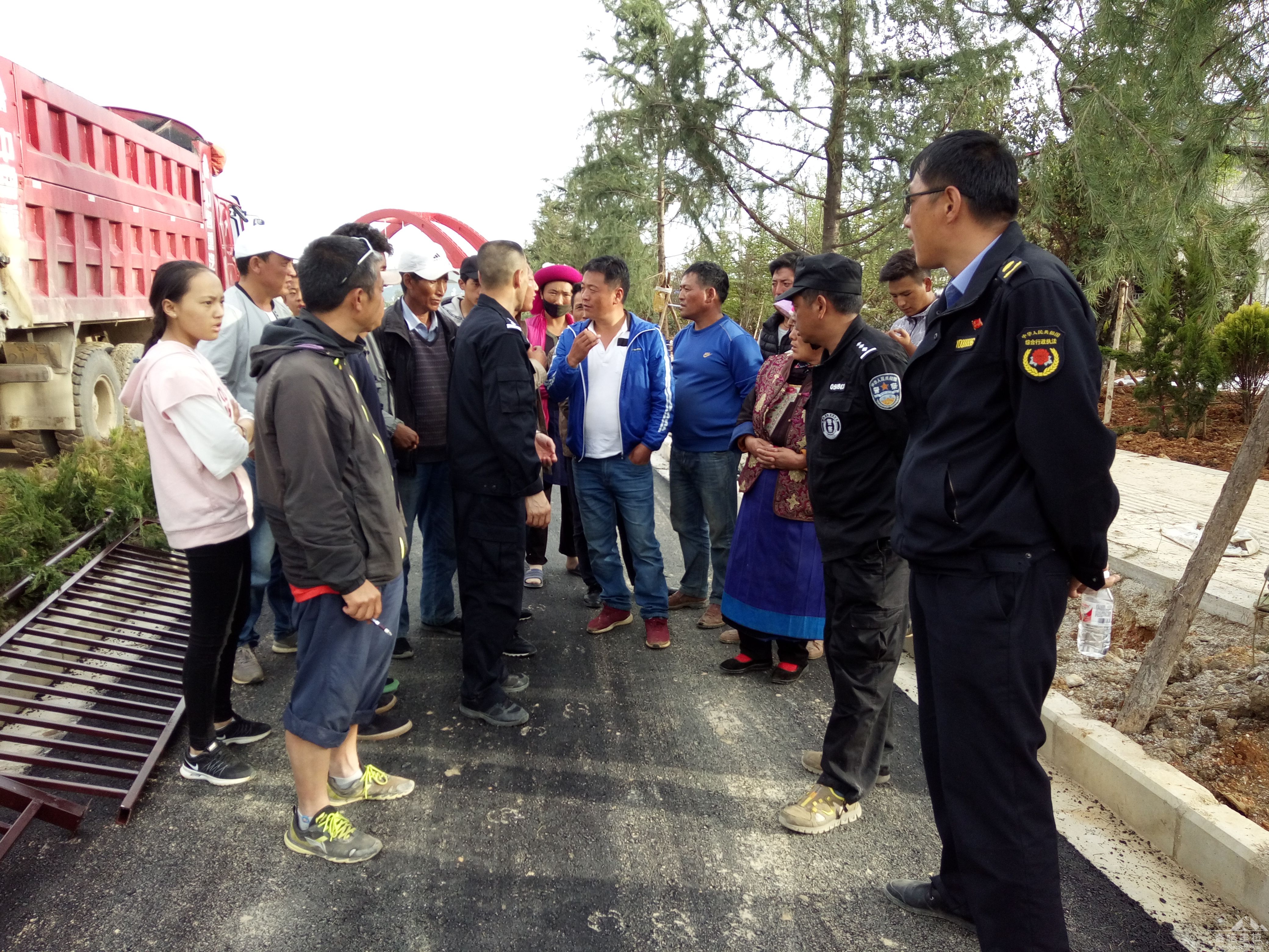 箐口路项目属州庆献礼工程,为确保项目顺利推进,针对箐口路开口施工难以推进等问题,根据市委市政府工作部署安排,2017年8月17日下午4点,市综合行政执法局共出动10辆执法车,60名执法人员与市公安局一起联合执法,全力协调箐口路村民阻工、扰工等阻碍工程进展的不稳定因素。