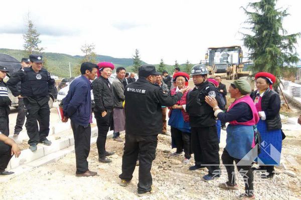国道214线箐口至白塔路段是今年州委州政府建州六十周年的献礼工程之一,为了确保工程如期进行,严防周边群众非法阻工阻路,香格里拉市公安局建塘派出所切实按照各级党委政府和市公安局的要求,从2017年8月9日起,成立了由香格里拉市公安局副局长、城市综合执法局局长张阁任组长、香格里拉市公安局建塘派出所副所长杨桂林任副组长的巡逻工作组,每天抽调5名民警联合香格里拉市公安局特警大队的5名民警开展此路段的常态化巡逻保通工作,直至工期完工。