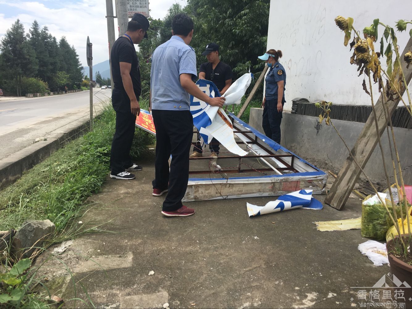 “ 喜迎州庆 清洁家园”,为进一步做好州庆倒计时路域环境整治工作,展示好虎跳峡镇作为香格里拉“南大门”形象,执法工作组第二阶段执法工作组重点对虎跳峡镇境内二级公路两侧商户、修理厂擅自设置的各类广告牌及在门面设置的各类塑料广告、占道经营、乱堆乱放垃圾脏乱差等行为下发责令改正通知书限期进行统一整改,对设置的各类广告牌由虎跳峡镇人民政府对各类广告牌进行统一规划,;对二级公路沿线两侧村民占用公路路产乱堆乱放建筑材料、垃圾进行统一清查整治,下发责令改正通知书限期整改;对除州庆重点项目外,8月18日至9月18日期间一切建设项目停止施工;对二级公路沿线两侧沿街商户擅自搭建建筑物、地面构筑物、雨棚等违章建筑物下发责令改正通知书责令限期拆除。对在规定期限内拒绝整改的二级公路两侧商户、修理厂擅自的各类广告牌、占道经营设置的各类物品、乱堆乱放的垃圾堆积物、沿街商户擅自搭建建筑物、地面构筑物、雨棚等违章建筑物等,由虎跳峡镇人民政府出动大型机械(装载机)及大型车辆,由执法工作组当场依法予以强制清除。