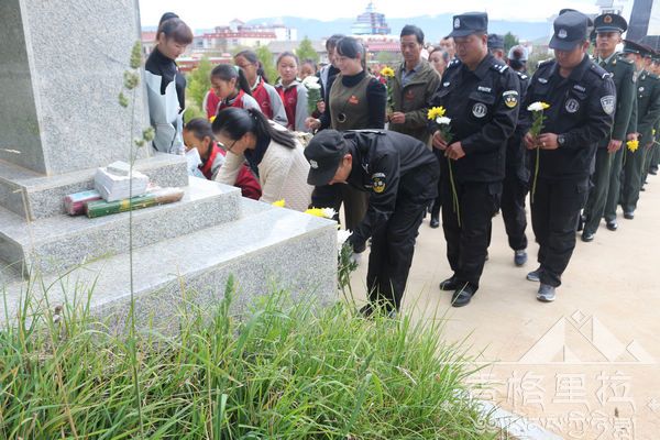 活动当天,参加扫墓的民警身着警服,排着整齐的队列,手捧鲜花,奏唱国歌之后,由迪庆州人民政府副州长、州公安局长张春泽同志致纪念悼辞。之后,大家来到纪念碑前向英烈们一一敬献了花篮和鲜花,并依次从纪念碑前走过,向英烈鞠躬,表达自己崇高的敬意和哀思。