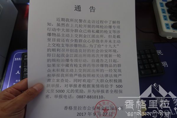 一、金江派出所民警与迪庆州旅游警察支队扎西边军副支队长等一行到辖区内走访了部分老百姓,调查了解当前金江辖区内缉枪治爆工作开展情况,同时希望老百姓积极为公安机关提供缉枪治爆方面的线索,辖区内共走访老百姓4户。