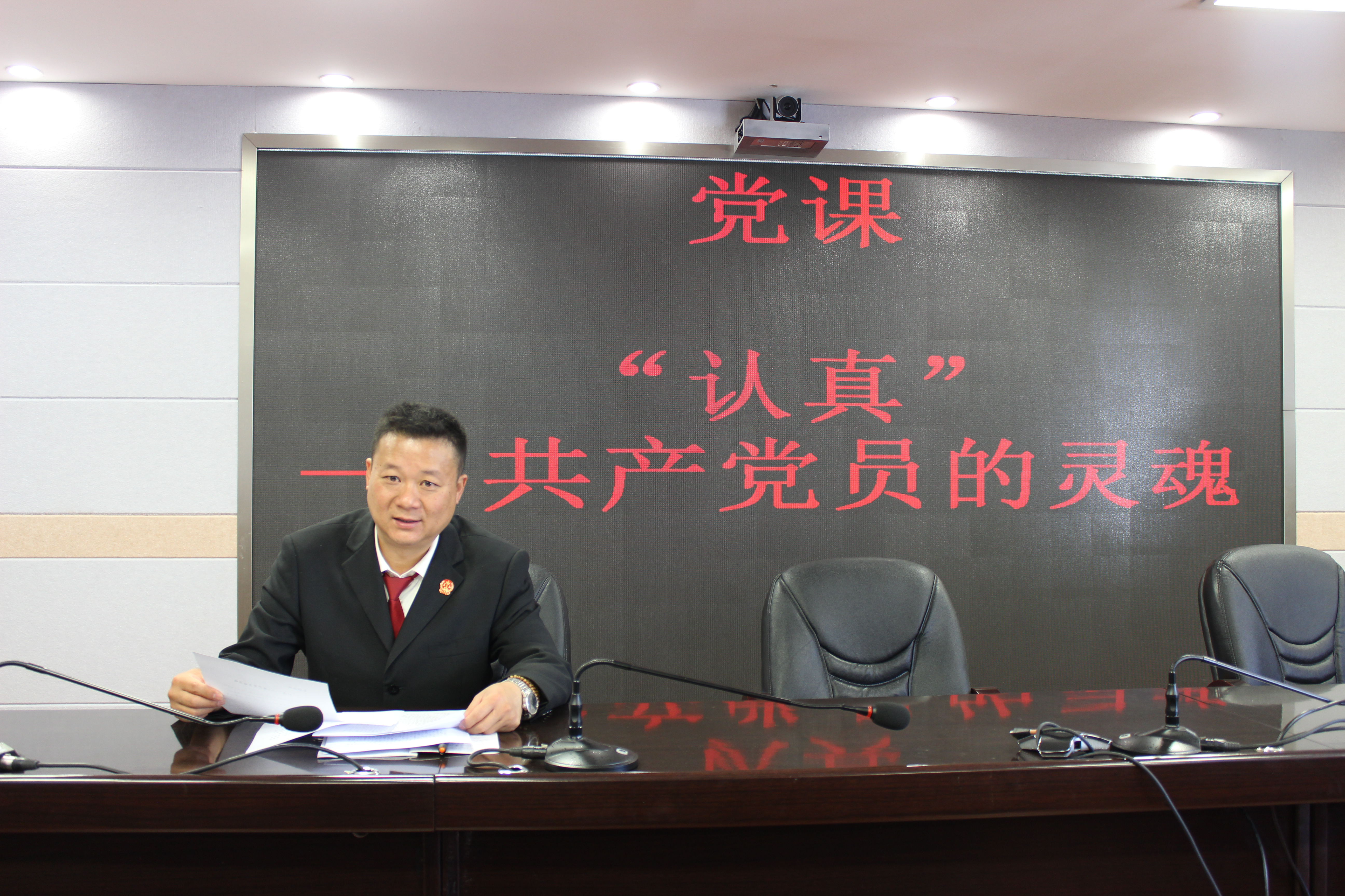 首先,由戴勇副院长给大家上题为《“认真”--共产党员的灵魂》的党课。戴副院长从生活工作中看到不认真的人、不认真的事作为党课切入点,就发现问题后,如何切实加以解决作为问题导向,深刻体悟出党性修养是党员终生的事、毕生的课。围绕“认真”二字,谈体会及心得,给全院干警上了一堂深刻的党课。