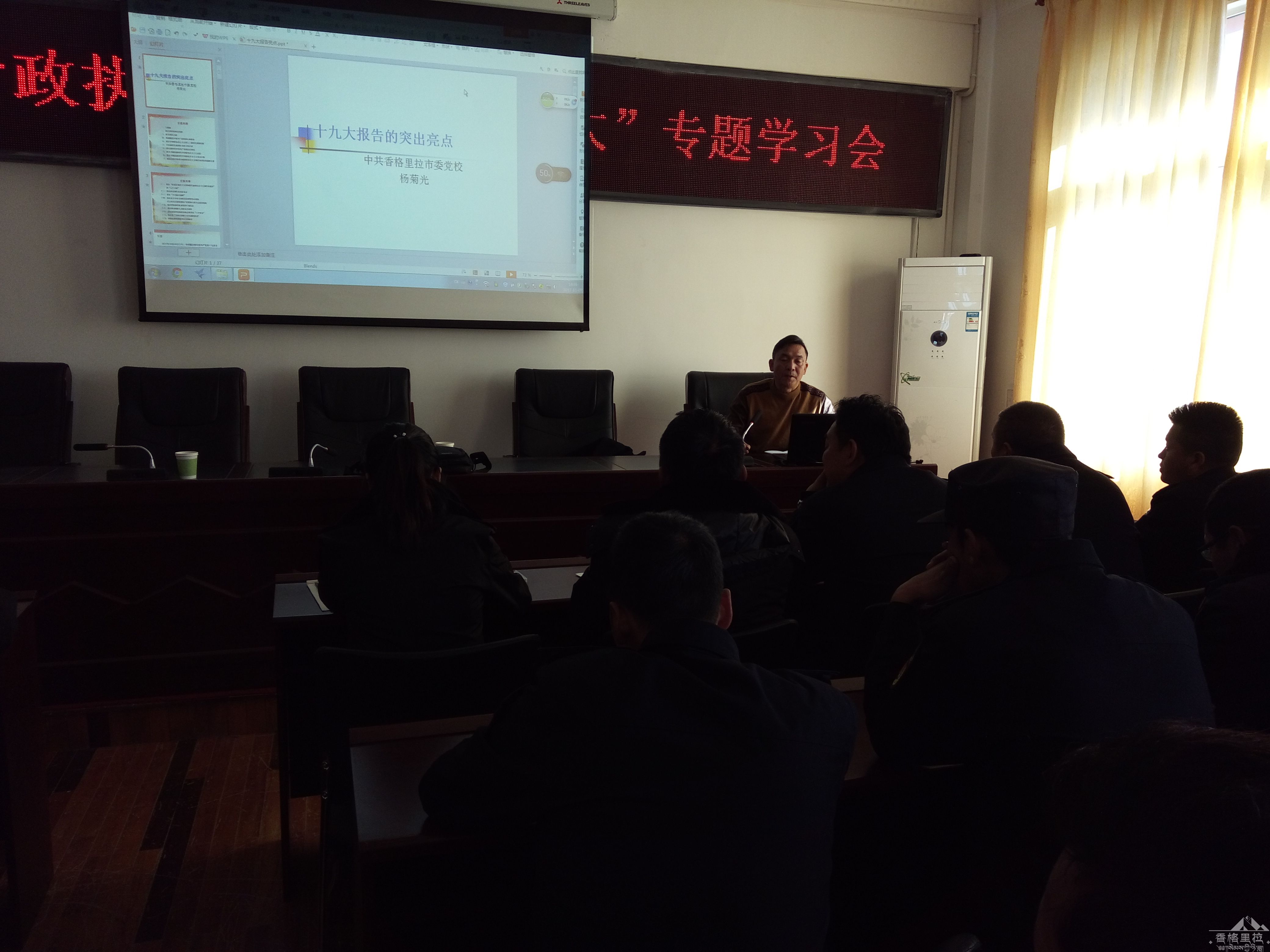 为深入学习宣传贯彻好党的十九大精神,进一步推动学习宣传贯彻党的十九大精神向广度和深度拓展。香格里拉市综合行政执法局在集中学习、深入研讨的基础上,提前谋划,于11月9日邀请中共香格里拉市委党校杨菊光老师,作了题为《十九大报告的突出亮点》的专题学习辅导。全局职工干部80余人参加学习。