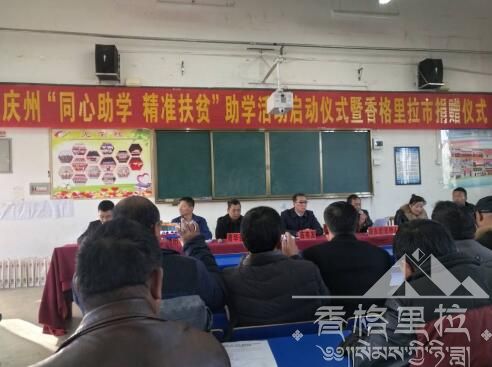 2017年11月27日上午10点 ,明日之星公益基金管理委员会到香格里拉市开展“同心助学 精准扶贫”助学活动。迪庆州“同心助学 精准扶贫”助学活动启动仪式暨香格里拉市捐赠仪式在香格里拉市第二中学多媒体教室举行,会议由迪庆州教育局副调研员陈永宏主持。中共迪庆州委常委、统战部部长苗有发,中共香格里拉市委统战部副部长曹华强,香格里拉市委教育党工委书记、市教育局党组书记、局长牛盈春,明日之星公益基金管理委员会助学部部长柏钦学,明日之星公益基金管理委员会助学部副部长肖洪参加了捐赠仪式。