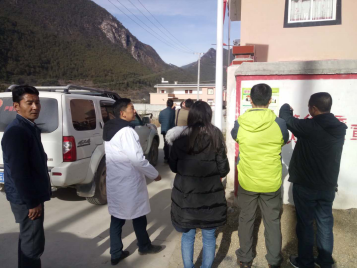 2017年12月9日省卫计委胡副处长等一行人陪同下对健康扶贫工作开展情况、近期工作动态进行督导。省级相关工作人员首先随机抽取了仓觉村几户建档立卡户村民进行入户调查,入户过程中详细询问村民对健康扶贫工作了解情况,以及是否享受家庭医生签约相关政策。随后又到仓觉村卫生室进行督导,询问村医五境乡建档立户基本情况,查看健康扶贫相关台账等,最后对健康扶贫相关工作开展情况进行一一查看。