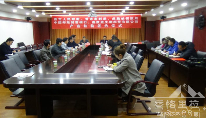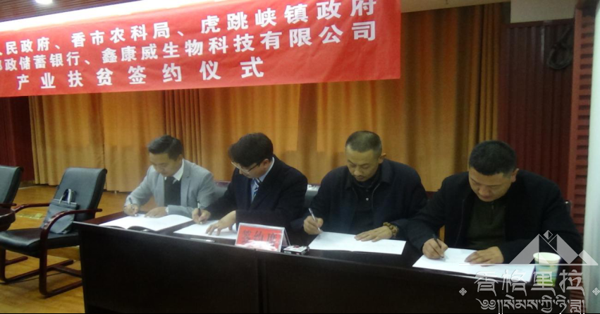 2018年3月16日下午,香格里拉市人民政府、市农科局、虎跳峡镇政府、中国邮政储蓄银行丽江市分行、鑫康威生物科技有限公司产业扶贫签约仪式在香格里拉市行政中心举行。市委副书记刘秋生、副市长松萍出席仪式。仪式上,市农科局、虎跳峡镇政府、中国邮政储蓄银行丽江市分行负责人进行签约。