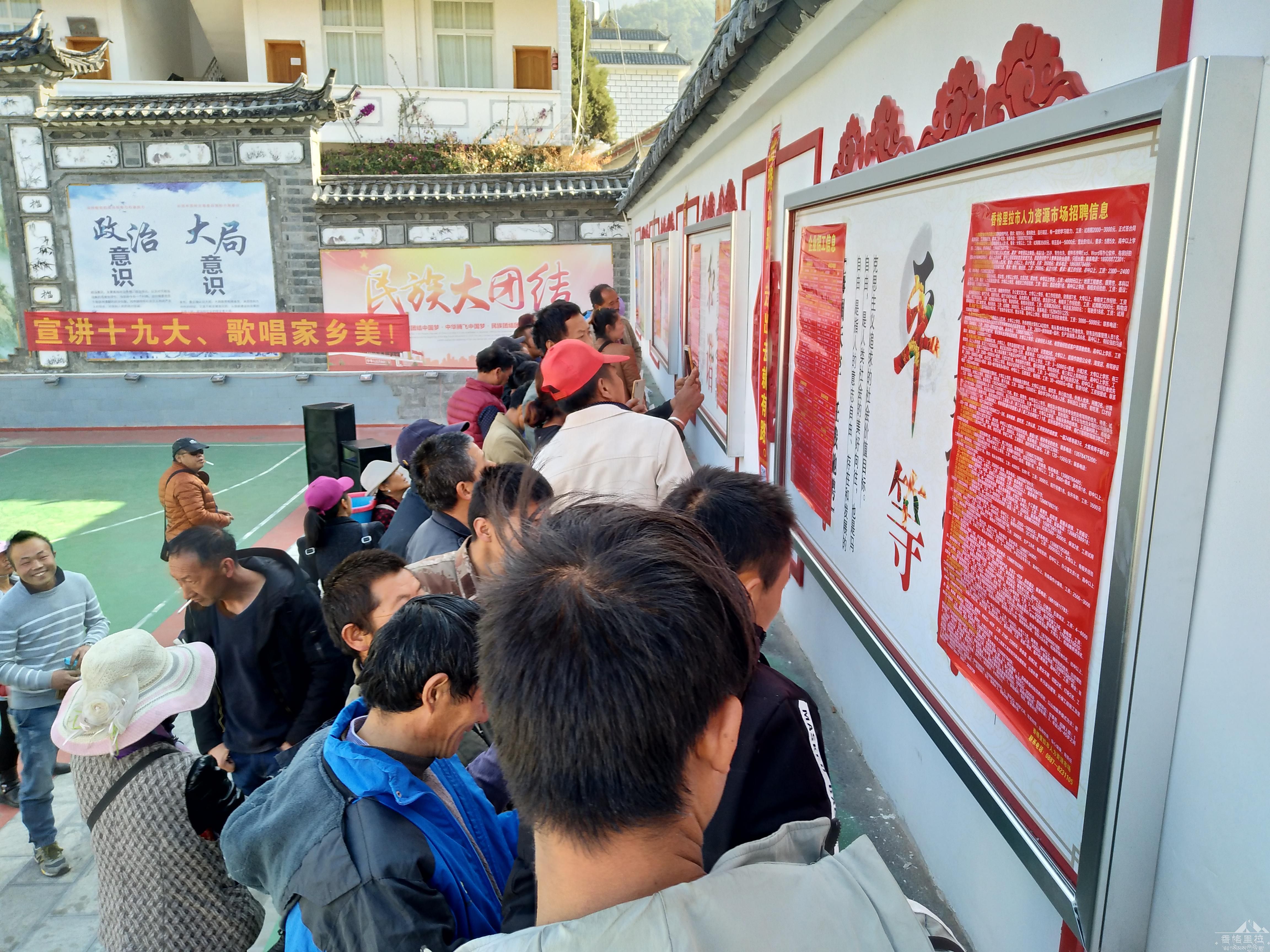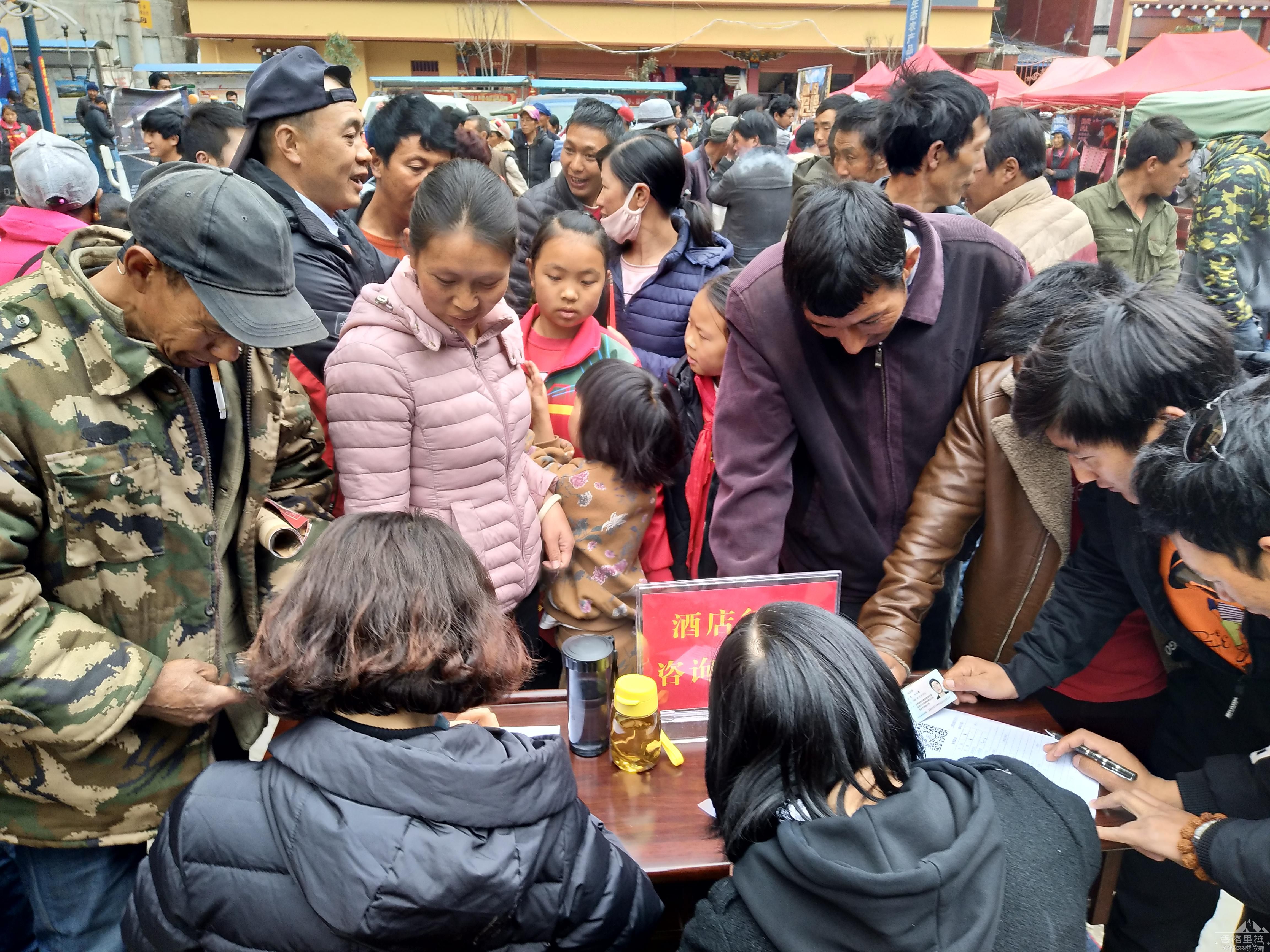 招聘会现场人头攒动,气氛热烈,香格里拉吉群保安服务有限责任公司、鑫泉劳务服务公司等8家企业参加了此次招聘会,大理滨南城市综合管理服务有限公司香格里拉市分公司、香格里拉市巴拉格宗旅行社有限责任公司等92家企业及省外14家企业提供客房服务、保洁等就业岗位2000多个,通过供需双向选择,329名农村劳动力与企业达成意向性协议,其中精准户贫困劳动力136人,残疾2人,与州内企业签订意向性协议291人,省外企业签订38人,张贴、发放各类宣传标语、宣传册2000余份。