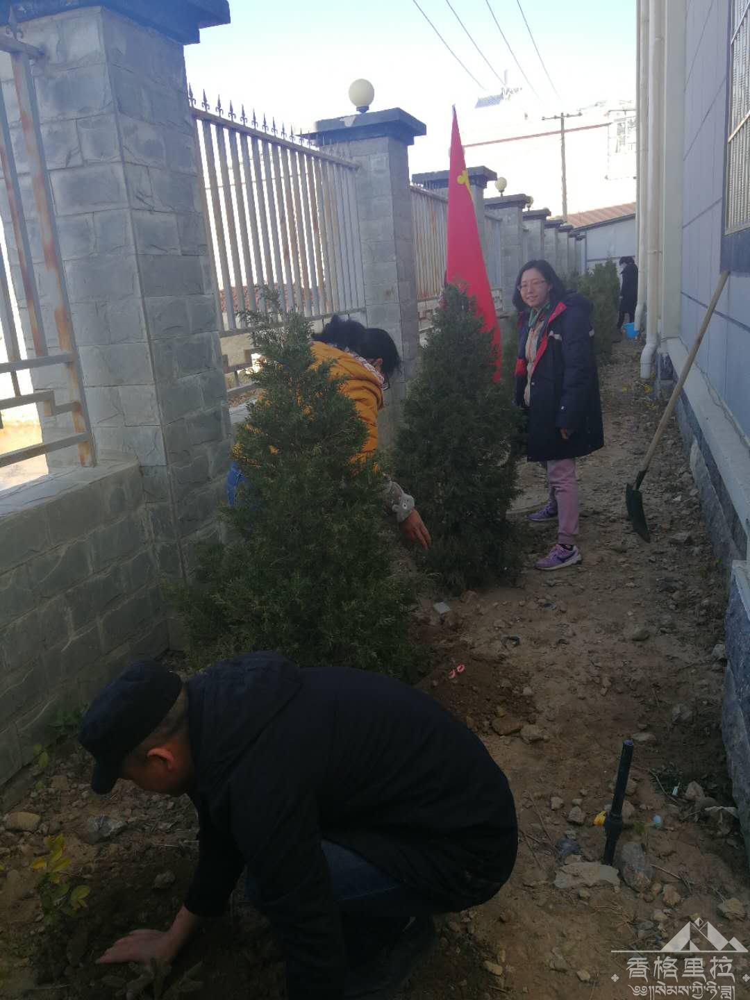 三月的香格里拉市寒风依旧刺骨,但丝毫没有影响党员们植树节活动的热情。3月20日早晨,大家已经在办公区集合,认领树苗,接着来到我局的绿化区域,分配任务开始植树,由于挖土是个力气活,身强体壮的男同志们就承担了这一重任,负责分栽树苗的女同志也毫不示弱,很快就把一棵棵树苗栽进了挖好的坑中。
