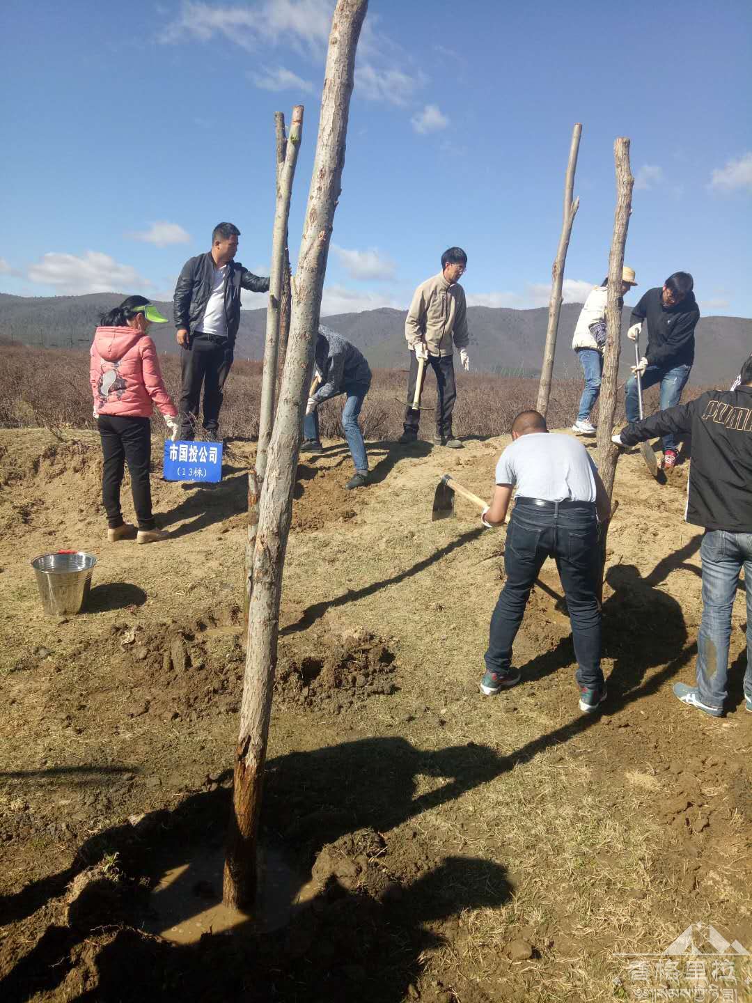 在植树现场是一派紧张有序的劳动景象。参加植树的职工个个热情洋溢、干劲十足,拿铁锹的、拿水桶的、运树苗的,挖坑的挖坑、浇水的浇水、运树苗的运树苗,你追我赶,比干劲、比进度,各个环节衔接有序,样样做得认真到位,个个忙得满头大汗。到处都是忙碌的身影和劳动的欢声笑语……