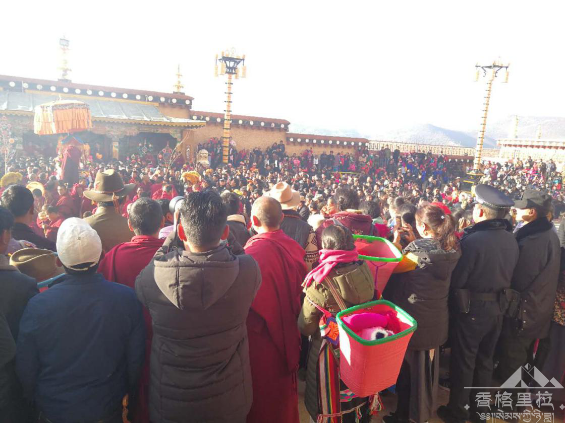 2018年3月2日(藏历正月十五),迎来一年一度的迎佛节,迎接未来佛——称弥勒佛也称东来佛祖,藏语谓“强巴佛”,是佛教中主宰未来世界的佛。这天松赞林寺要举行盛大的“祈愿大法会”,藏语叫“默朗钦布大法会”,这是藏传佛教格鲁派最重要的佛事活动之一。当天凌晨四时,寺院里的僧人就开始诵经,九时将强巴佛从大殿迎到寺院广场,然后绕寺一圈,藏族群众纷纷把手里的哈达敬献给未来佛,并祈愿新年吉祥、平安、如意。附近的村民每年都会来参加大法会,祈愿身体健康、家庭幸福,家人、社会都吉祥平安,过上更好的日子。每年的这时候农民春耕还没开始,属于农闲季节,周围的信教藏族群众基本上都会来参加法会。