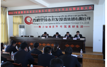 香格里拉市交运服务有限公司于2018年1月19日14:30在集团公司会议室召开2017年度总结表彰大会。集团公司副总经理邓建勇、交运公司总经理孙亮、副总经理张爱华携全体行政人员及公交车驾驶员代表、出租车驾驶员代表出席并参加了此次会议。