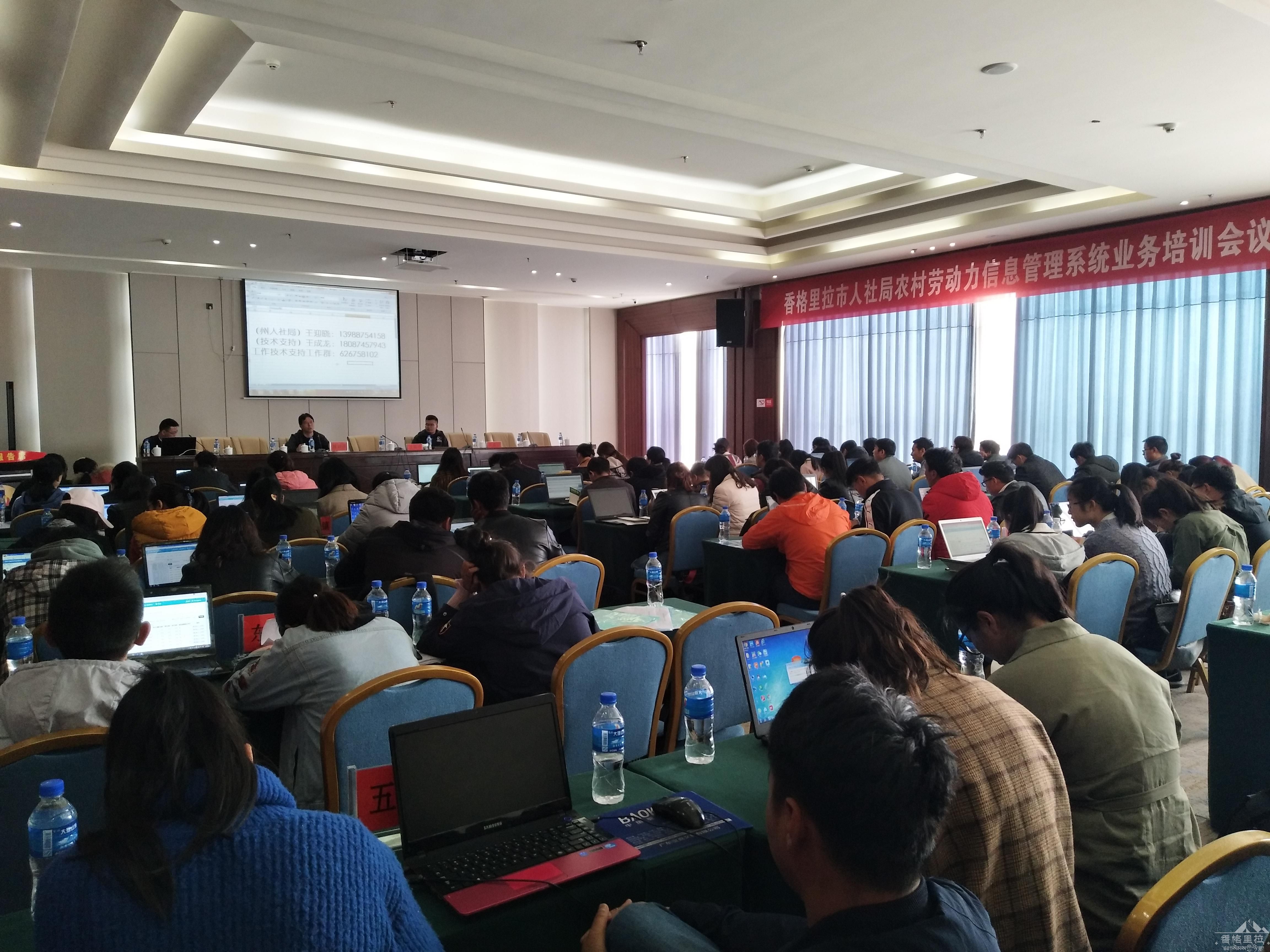5月8日,香格里拉市人社局召开2018年农村劳动力管理信息系统业务培训会议。州人社局就业局局长汉美珍同志、州人社局农民工工作科王迎晓同志、市人社局副局长杨志国同志参加会议,各乡(镇)劳动保障所农村劳动力信息系统管理、操作人员,各村(社区)系统管理、操作人员,市人社局劳动就业服务局工作人员,香格里拉市人力资源市场职业能力培训学校全体工作人员参加会议。