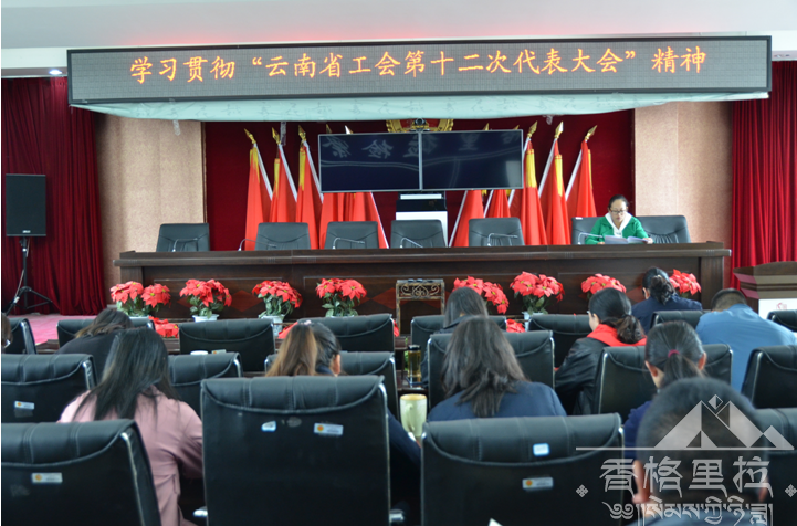 会上,传达学习了“云南省工会第十二次代表大会”会议精神,组织学习了省委书记、省人大常委会主任陈豪和中华全国总工会副主席、书记处书记尹德明等在会议上的讲话精神。