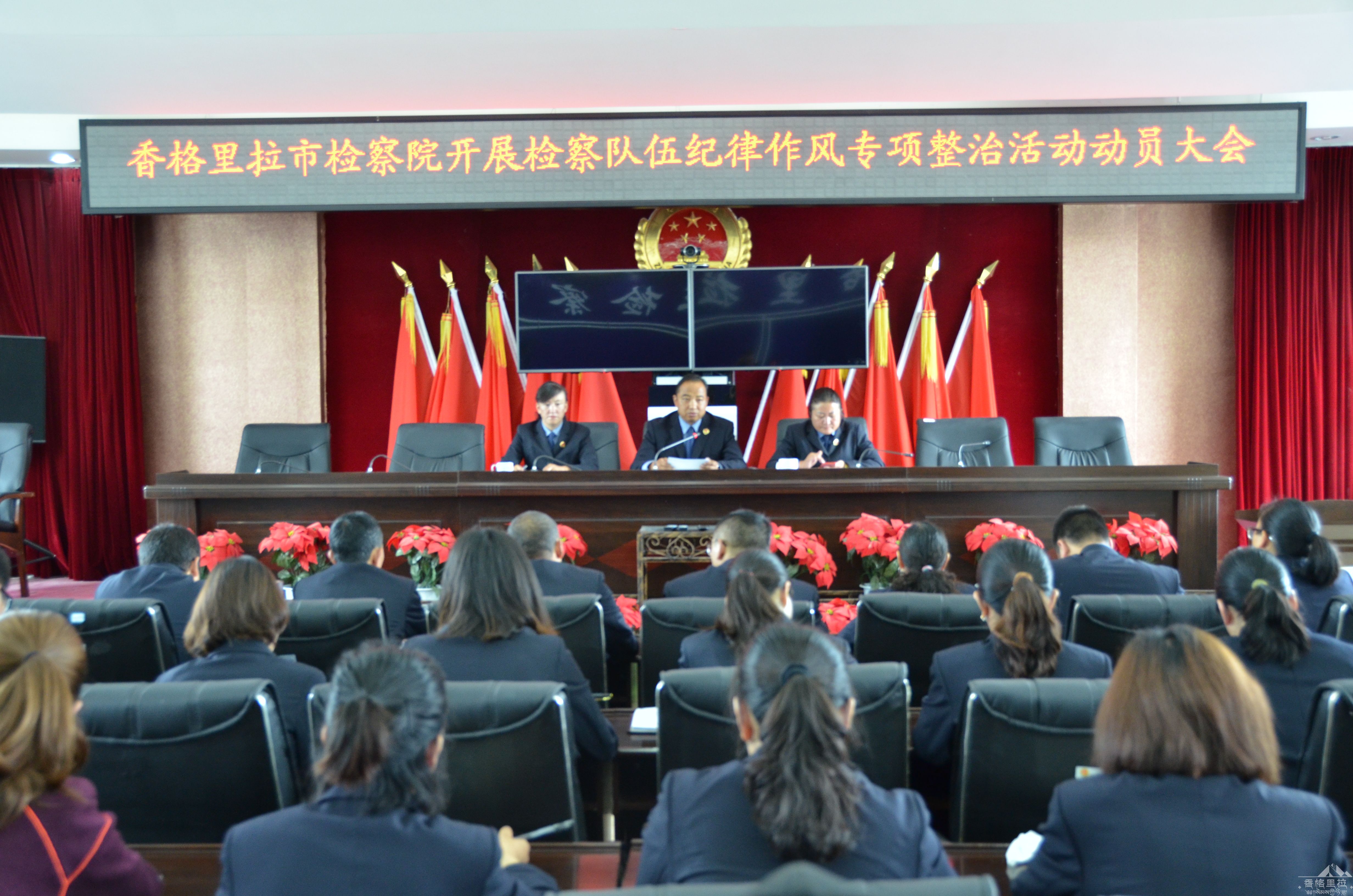 为认真解决检察队伍建设中存在的突出问题,切实贯彻全面从严治党、从严治检要求,加强检察队伍纪律作风建设,按照省委政法委、省院、州院统一部署及要求,2018年6月29日上午,香格里拉市人民检察院召开纪律作风专项整治活动动员大会。院党组书记、检察长蒋培源同志作动员讲话。