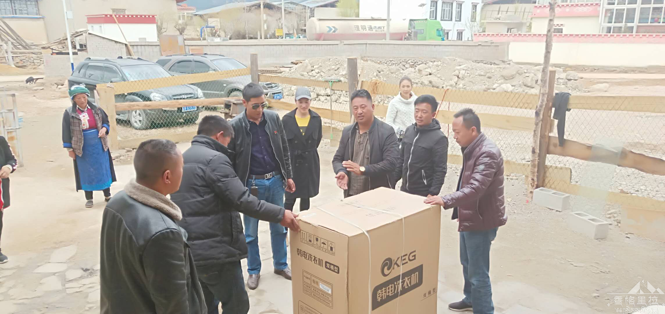2018年5月4日松赞林寺管理局协同解放村驻村工作组、村“三委”前往解放村贡比组看望慰问火灾户。