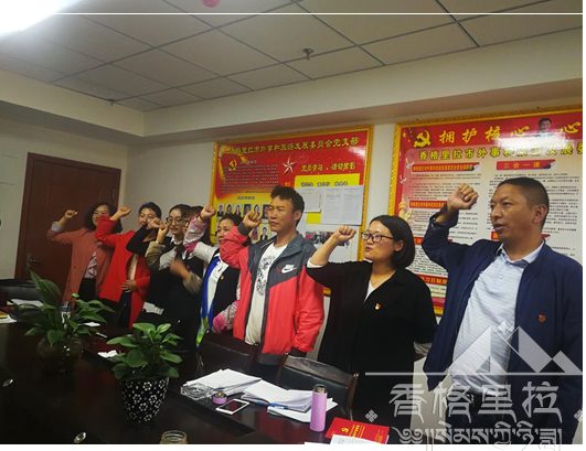 为庆祝中国共产党成立97周年,缅怀革命先烈,讴歌党的丰功伟绩,进一步激发市旅发委党支部织活力,增强广大党员光荣感、使命感,引导广大党员干部更加热爱党、拥护党。香格里拉市旅发委党支部在7月3日开展了“七·一”系列活动。本次活动以重温入党誓词拉开帷幕,全体党员在支部书记的带领下,重温了入党誓词,一起朗读党章,支部书记已新党章“党的纪律”作为党课主题,增强党员组织观念、服务意识,以优良的工作业绩向党的生日献礼。